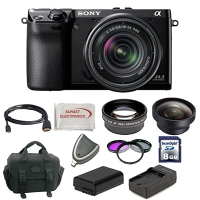 The Sony Alpha NEX-7 Kit Includes: - NEX7 Digital Camera with 18-55mm Lens - 2X Telephoto Lens - 0.45X Wide Angle Lens - Filter Kit - Extended Life Battery - Rapid Travel Charger - 8GB Memory Card - Memory Card Reader - HDMI Cable - Soft Carrying Case - SSE Microfiber Cleaning Cloth
