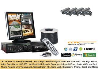 Quick Description The Monalisa Series offers some of our highest resolution and low lux cameras. These Infrared Sony Super HAD II Security Camera offers 600 Lines of Color Resolution, and night vision in complete darkness up to 100 feet. Expect a perfectly CLEAR Color High Resolution image during the day, and a equally impressive night time and low light picture with the Monalisa Cameras. The Monalisa Series includes everthing needed for installation including: Infrared Sony Super HAD II (Newest Chip)Indoor/Outdoor Infrared Bullet Monalisa 600 Lines Day/Night Security Camera H.264 High Compression Network Digital Video Recorder with 500gb Hard Drive for long storage Internet, Cell Phone Viewing and Central Monitoring Software built in to DVR and ready to operate All Cables and Connections Needed Multiple Output Power Supply 2 Year Warrany Satisfaction Guarantee Free Surveillance Sign Unlimited Free Technical Support READ ABOUT THE EXTREME SERIES DVR USED IN THIS SECURITY CAMERA SYSTEM>> Youve worked hard to grow your home and business, and we understand that. When you need to review surveillance, experience the quality and vividly accurate performance of the H.264 G4 Digital Video Recorder. Simply stated, your decision to purchase a Genuine G4 DVR will pay dividends for years to come. You will appreciate the considerable quality advancements over ANY competing manufacturer, and the ease of use simply unparalleled. Check out the impressive product features of our EXTREME SERIES G4 Digital Video Recorder below. We are sure you will agree that the EXTREME SERIES is in class of their own. EXTREME G4 SERIES Product Features: TRUE HIGH DEFINITION Video Output Internet Video (fast, fluid, user controlled bandwidth flexibility) Substream - only a handful of leading manufacturers deliver this significant technology Simultaneous Video Output Capability: HDMI, VGA, BNC, and LOOP THROUGH Allows complete Monitoring Flexibility ALL Channel Simultaneous Playback (VERY RARE on H.26
