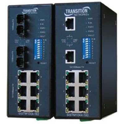Transition Network's Industrial Converter Switch is hardened device designed to reliably operate in harsh environments such as those found on factory floors, outdoor enclosures or other hazardous environments. The Converter switch can connect to either 10Base-T or 100Base-TX ports and can provide redundant 100Base-FX fiber optic connections for links up to 20km.