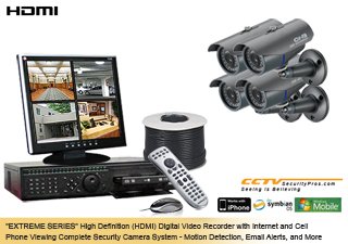 Our EXTREME SERIES High Definition Digital Video Recording Security Camera Systems offer all the latest and greatest features and functions and then some - available on the market today. The EXTREME SERIES DVR is a High Definition Digital Video Recorder that is perfect for, business, government, or any high end CCTV application. The easy to use graphical user interface makes the EXTREME SERIES DVR simple and easy to set up and use. The EXTREME SERIES High Definition System offers: HDMI High Definition Recording - Unlike our competitors our DVRs offer High Definition Multimedia Input with the ability to capture resolution up to 1080p. Our High Definition DVR can improve and up-convert the resolution image quality on any older cameras you may have. Multiple Monitor Options - Use any TV, PC Monitor (VGA), High Definition (HDMI) TV or CCTV Monitor. You can use up to three monitors at a time. You may use any PC to view your surveillance video on your local area network. For example, our customers with wireless laptops on the LAN network have the ability to watch surveillance video. You may view, record, and review video from any PC or laptop at your local location. Multiple Screen Displays - View 1 camera, 4 Cameras, 8 Cameras, 16 Cameras, or 32 Cameras at a time. In addition, there are many more flexible screen display options to choose from. Remote Viewing and Video Review from ANY PC or CELL PHONE - Internet Viewing represents one of the most popular feature. There are NO MONTHLY FEES. Simply plug in our Digital Video Recorder to any high- speed Internet connection. It must be hardwired with the data wire (the wire that is coming from your modem or router and is slightly larger than a telephone plug.) You may view over Internet Explorer, MAC, iPhone, Blackberry, Android, and More. It is a FREE APPLICATION that allows you to take advantage of the latest technologies. Motion, 24/7, or Scheduled Recording - You can save time and hard drive space by recording on motion, w